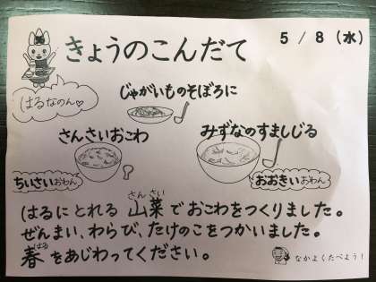 長すぎた連休で、ちょっと体重が増え気味なのですが、給食は、もっともっと食べたくなっちゃいます。