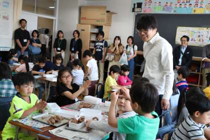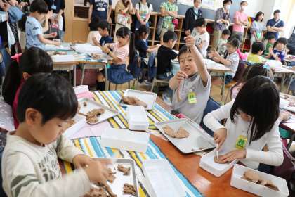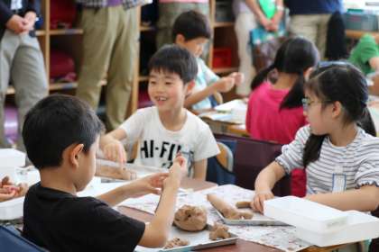 1年生は図工で「ねんど」をやりました。丸をたくさん作ったり、ヘビのように長くしたり、指先に力を入れ、手のひらで感触を楽しみながら、楽しそうに作品に取り組んでいる様子です。