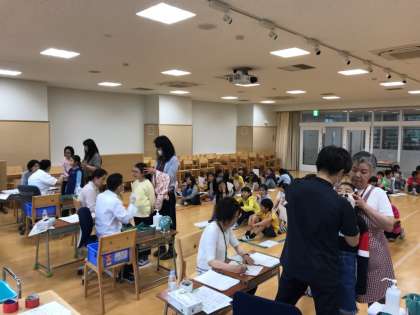今日は2年生以上の全学年児童が歯の健診を受けました。多目的室で、三人のお医者さんが丁寧に診てくださいました。