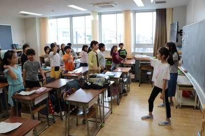 今朝は各クラスでスポーツフェスタの応援練習です。応援団が教室に行き、コールや手拍子など教えてくれます。体育の時間に、自分のチームの色のTシャツを着る子が増えてきたので、わくわくする気持ちがさらに増します。