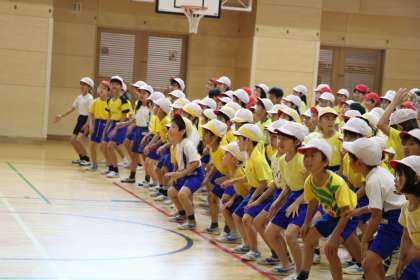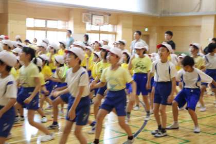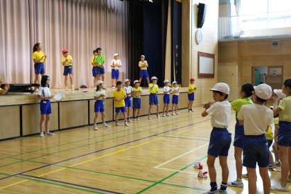 黄色組の応援練習です。団長に気合の入った呼びかけに、カメラを向ける私まで、おもわず「おっー!」と言ってしまいます。