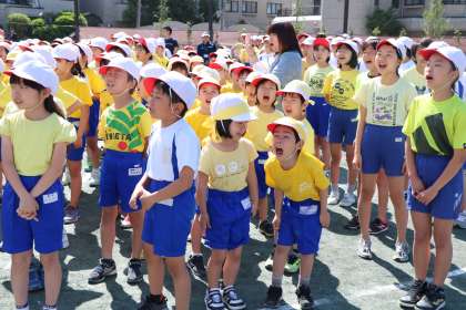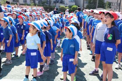 朝から元気な歌声が校庭に響きました。