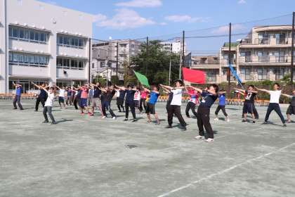 応援団の練習最後は、恒例の先生方からのエールです。暑い中、早朝練習から休み時間練習まで本当によく頑張った応援団です。