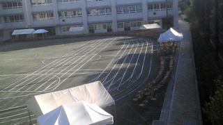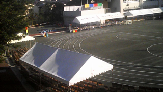 時間が巻き戻りました。小川さんのドローンによる朝の校庭の風景写真です。