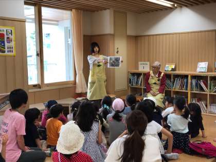 いよいよ、土曜日の図書室が利用できるようになりました。今日は山の木文庫のお二人をお招きして、おはなし会を開催しました。素話や絵本の読み聞かせなどで楽しいひとときを過ごしました。