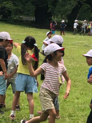 おやつタイムの後は芝生の上でたっぷり遊びます。