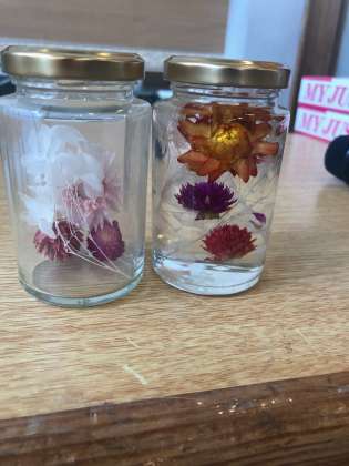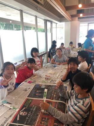 食堂でハーバリウム作りが始まりました。川場の思い出になるよう、自分らしい作品に仕上げようと頑張っています。