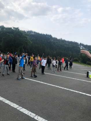 おはようございます。2日目の朝です。今日の川場村の天気は曇り、最高気温28度です。まず朝会を行いました。