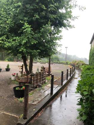 今日は雨の1日なので、プログラムを変更することになりました。歩いて村めぐりをすることはなし。中野ビレッジで、雨用プログラムを楽しみ、閉室式。その後バスで車窓からの田園風景見学をしながら、田園プラザに向かいます。