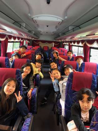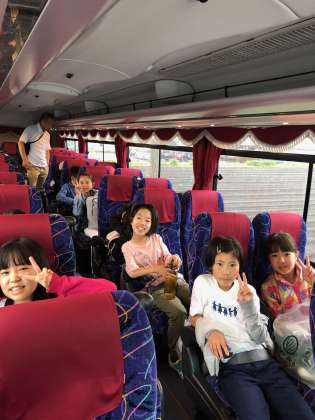 予定通りの時刻で、田園プラザを出発しました。バスレクの1番は、カラオケ大会です。一曲めはボヘミアンラプソディー!