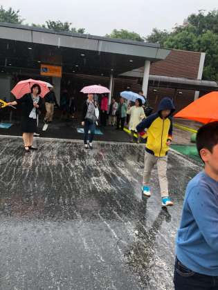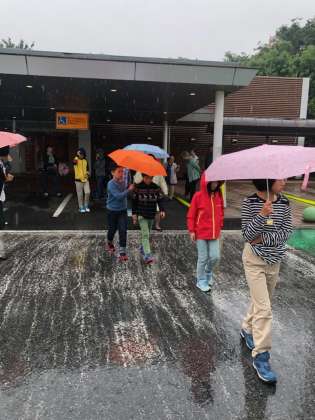 今日はあいにくの雨模様なので、帰校式は多目的室で行います。お迎えに来てくださる保護者の方は、多目的室までお入りください。