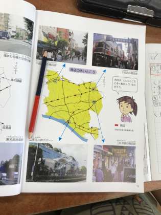 教育実習生のIさんの研究授業です。世田谷区の商店街はどんな場所に置かれているのかを、資料をもとにして考えます。