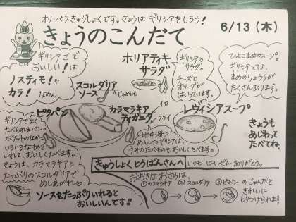 今日は、オリパラ給食ギリシャ編です。