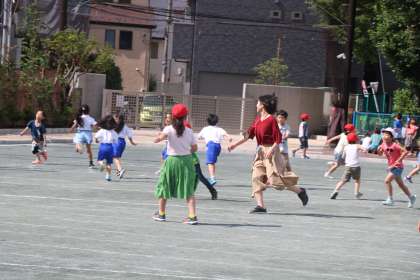 今朝は、ロング朝遊びでした。1グラでも2グラでも、先生も一緒にたくさんの子どもたちが遊んでいます。