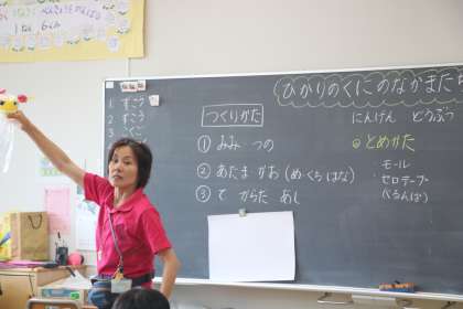 1年6組の図工の学習の様子です。「ひかりのくにのなかまたち」という作品です。透明の様々な素材やカラーフィルムを使い、自分で考えた、ひかりのくにの仲間を作ります。日の光の入る窓に飾ろうねと、説明をしっかり聞いてから、作品作りスタートです。子どもたちは「先生!見て見て」とかわいくできた途中経過を見せにきたり、困ったことを相談にきたり。アイディアいっぱいの子どもたちです