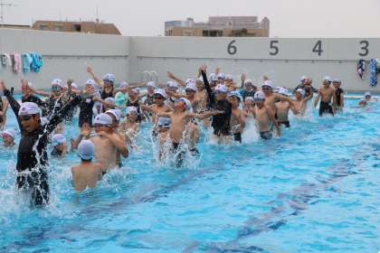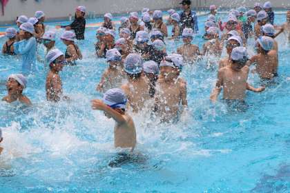 水泳は、一度覚えると一生忘れません。楽しく、そして正しく泳げるようにたくさん練習しましょう。プールを出たところの上履きの並べ方にも、思わずにっこり。靴の並べ方ひとつからも、子どもたちの一生懸命さが伝わり嬉しい気持ちになりました。