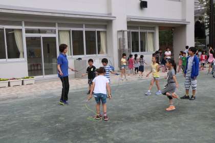 先生に縄跳びを見てもらったり、クラス遊びをしたり、思い思いの遊びを楽しんでいます。
