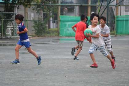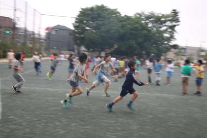 雨が上がり、グランドの状態も悪くなかったので、外遊びができました。看護当番の先生からの放送が入ると、校舎中から大歓声が聞こえてきました。先生と一緒に鬼ごっこをしたり、ハンドボールのようなボール遊びをしたり、楽しそうです。