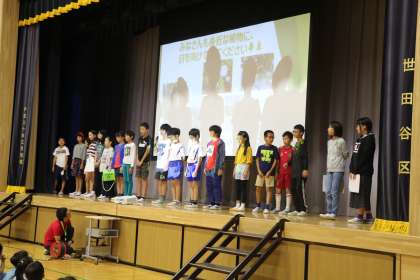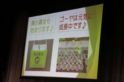 初めに、栽培委員会の紹介です。ゴーヤでグリーンカーテンを作ったり、緑の募金活動をしたり、山野小学校がよりよくなるための活動を紹介しました。