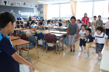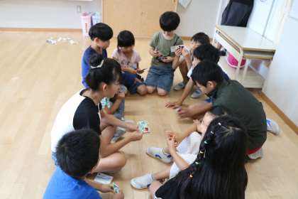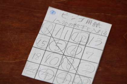 廊下でだるまさんがころんだ、ウノ、ビンゴをやっている様子です。