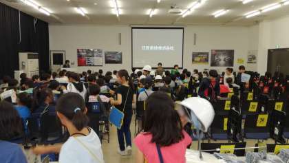 午後は日産車体湘南工場の見学です。この工場は主にステーションワゴンなどの商業車や海外向けの自動車を製造しているそうです。まずは概要の説明を聞きました。工場内の撮影は残念ながらNGでした。今回は5学級の見学のため、午前と午後で交互に二つの見学を行いました。写真が偏っているのはそのせいです。ご了承ください。