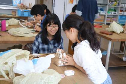ほかのクラスの完成作品もご紹介。どれも思いのこもった作品です。一つひとつ子供の思いが聞きたくなるものばかりです。