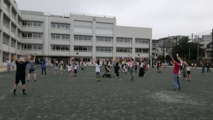 明日は、選挙の関係で第2校庭で、同じ時間に実施します。他にも、砧大根公園と観音公園でも行っています。今日は参加できなかったという方、明日以降もお待ちしております!
