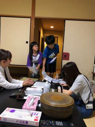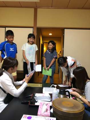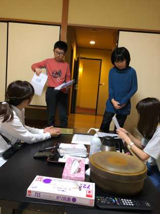 おはようございます。朝の健康観察です。各部屋の保健係が、健康カードを持ってきて、全員の健康チェックをします。あと5分で朝会が始まります。