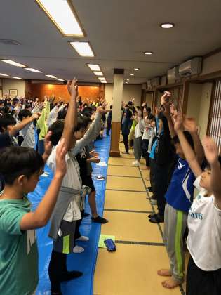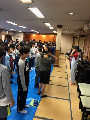 6時20分集合、朝会の様子です。5時前頃から雨が降っていますが、今日の天気は晴れ、時々大気が不安定なため雨の予報です。今日も早めの行動を心がけていきます。