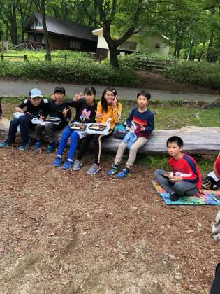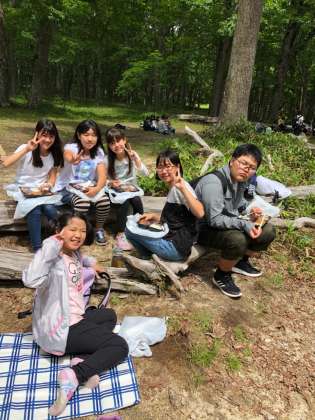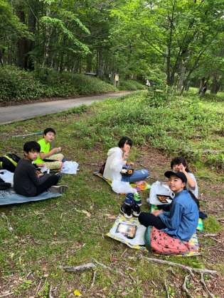 行動班ごとに食べています。