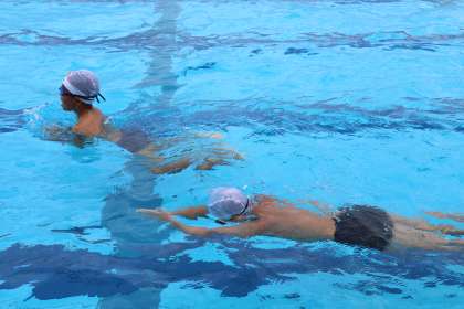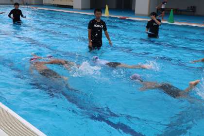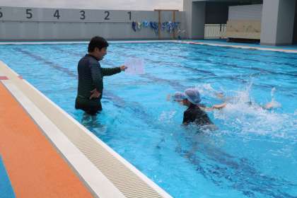 朝から小雨の降る時間もありましたが、今日は3回とも実施できました。写真は2年生の検定の様子です。たくさんの先生や友達に応援してもらうと、目標以上の距離を泳げる子もいました。