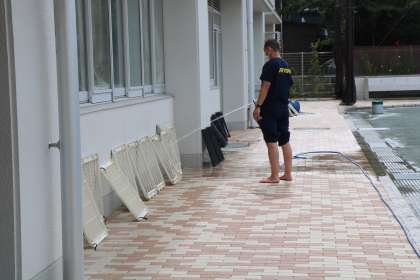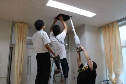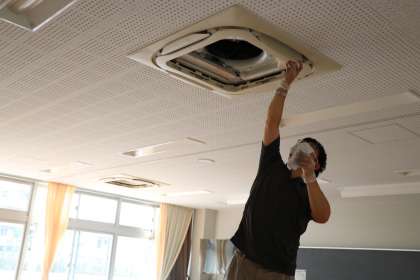 昨日の夏季水泳教室終了を待っていたかのように、肌寒い雨の一日です。今日は先生方総出で、新学期、気持ちよくスタートできるように環境整備1日目です。クーラーのフィルター清掃をしたり、教室を掃除したり普段手の届かないところを丁寧に整えました。