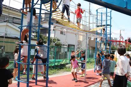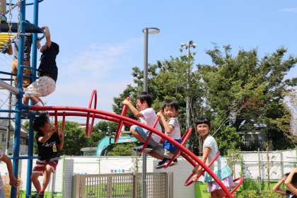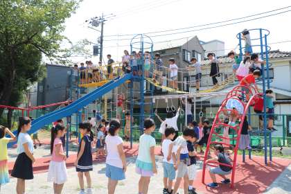 20分休みは、校庭で遊ぶ子がたくさんです。アスレチックも夏休み中に点検、塗装をし、久しぶりに遊べるようになりました。