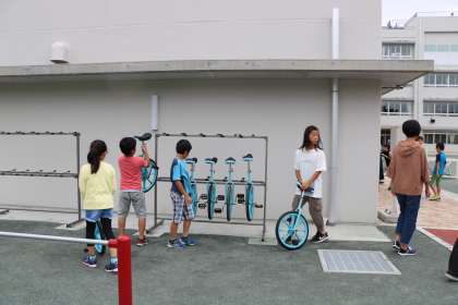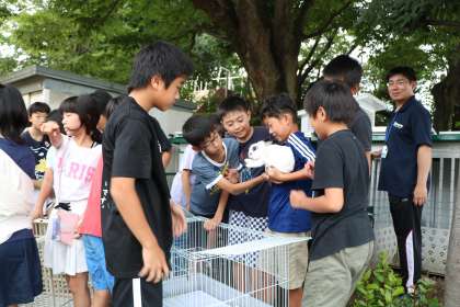 写真は、飼育委員会(うさぎ小屋へのお引っ越し)、園芸委員会(芝生の雑草抜き)、運動委員会(一輪車の出し入れ練習)の様子です。