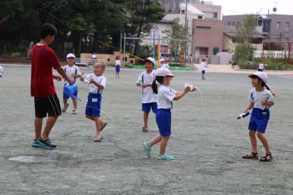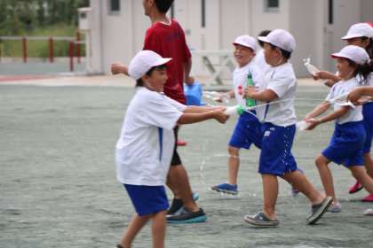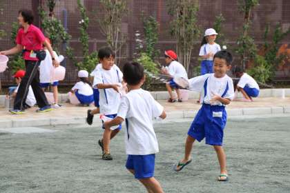 朝夕だいぶ涼しくなりましたが、日中はまだ蒸し暑い毎日です。生活科の学習「なつとあそぼう」で、水遊びを楽しみました。残り少ない夏を楽しむように、校庭には1年生の笑顔がはじけていました。