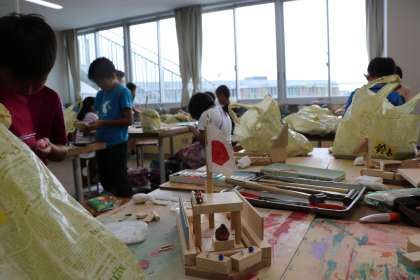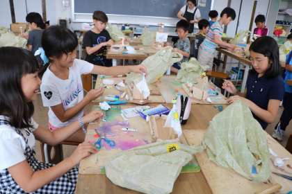 別のクラスの様子です。真剣に自分の作品に向かう姿は変わりません。