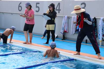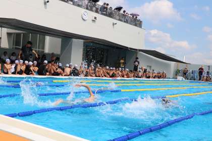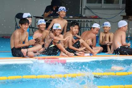 6年生最後の水泳学習「水泳記録会」が実施されました。水泳記録会は、誰かと競うことではなく、6年間の自分の頑張りを確認する会です。ベストな泳ぎ、ベストなタイムを、自分のてっぺんを目指して頑張ります。そして頑張っている友達を応援することも忘れません。