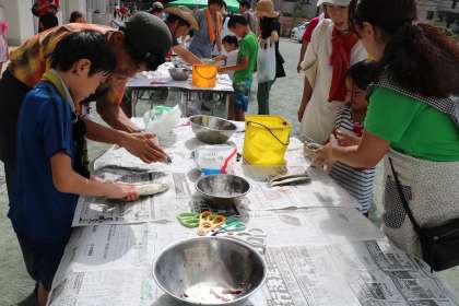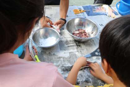 捕まえた魚を次のコーナーに持っていき、さばき方を丁寧に教えていただきます。
