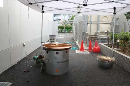 朝早くから、おやじネットの方々、学校協議会・運営委員会の皆様、準備をありがとうございました。魚のいけすは適温に保たれています。魚に打つ串も、昨晩のうちに熱湯消毒済み。準備万端です。