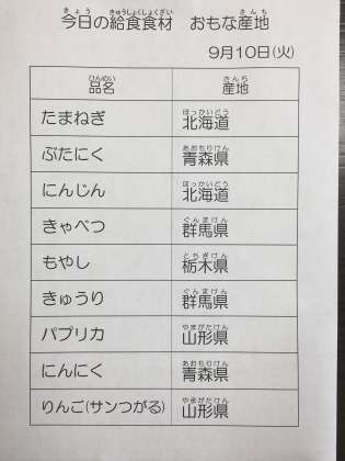 9月10日 今日の給食