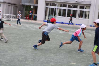 今日の昼休みは、たてわり班で遊ぶ、交流班活動でした。写真は校庭でのボール遊び、鬼ごっこの様子です。6年生の鬼は、少し手加減しながらも、下学年の子が必死になれる絶妙なスピードで追いかけてくれます。