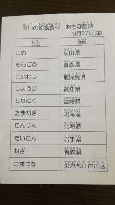 9/27 今日の給食