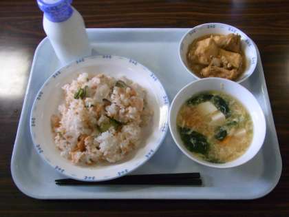 今日から2年生から6年生までは給食が始まりました。私は、給食の時間が大好きでしたから、今でもわくわくします。もちろん、まだまだ苦手な子もいるかとは思いますが、それでも、こうやっておいしいご飯を食べられる幸せを感じながら、楽しい給食の時間になればいいなあと思っています。