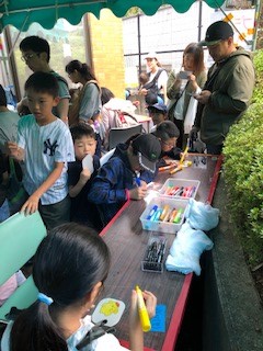 写真は「砧工房 蔵まつり」のプラ板屋さんの様子です。山野小学校の本部役員、学校運営委員の皆さんがお店屋さんを手伝ってくださっていました。たくさんの山野小学校のお友だちも楽しんでいました。