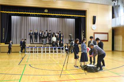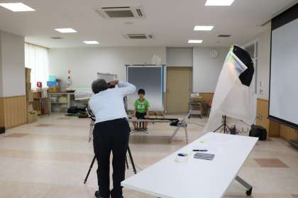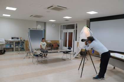 卒業アルバム用の、職員集合写真と個人写真を撮っている様子です。
