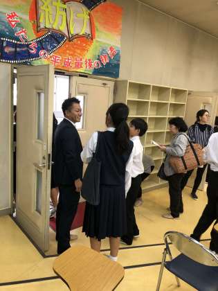 授業後、卒業生たちも懐かしの先生の元に、笑顔でかけよっていました。