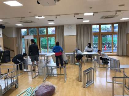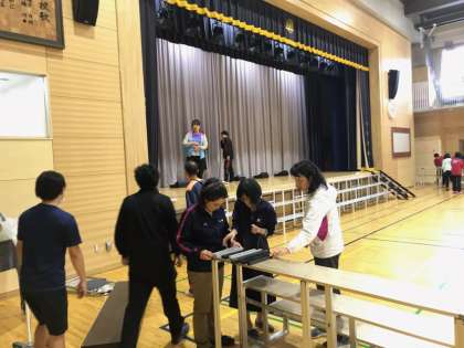 フェスタに向けて、三ヶ所の会場設営を教員が協力して進めています。多目的室と第1音楽室の照明の場所が今回から変更になりました。