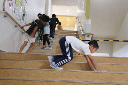 今日はたて割り班清掃の2回目です。前回よりスムースに分担をし、仕事に取り掛かっています。上級生が上手にリードをしている姿と、下級生が仲良く教えてもらいながら掃除をしている姿に、たった2回目とはいえ子どもたちの成長を感じます。