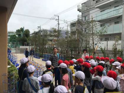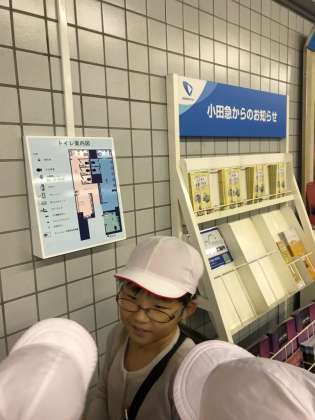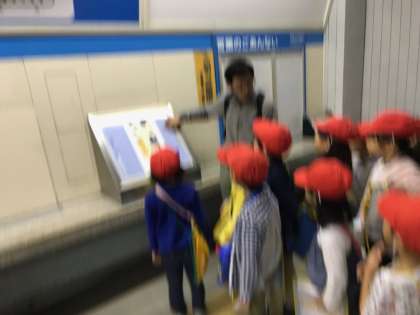 今日は町の中のやさしさ調べと秋を探すことをめあてに、羽根木公園に出かけました。祖師ヶ谷大蔵駅の中には、目が不自由な人向けの設備があります。