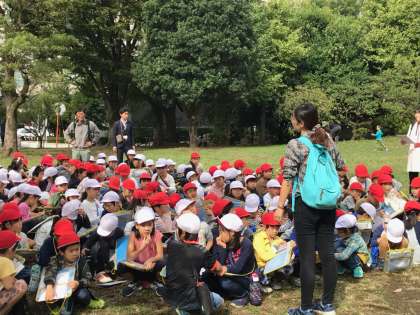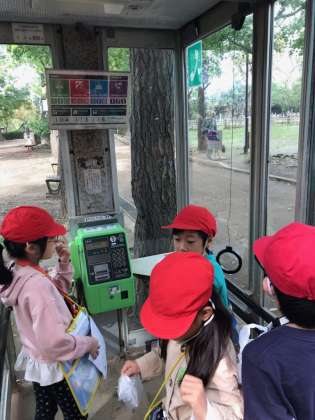 羽根木公園に到着。班に分かれて行動開始。公園内では、車椅子用の公衆電話を見つけました。